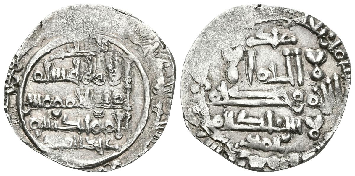 CALIFATO DE CORDOBA. Hisham II. Dirham. 394H. Madinat Fas (Fez). Citando a Al-Hayib con `Abd Al-Malik y `Abd-Al-Malik. V. 640. Ar. 2,66g. MBC. Escasa.