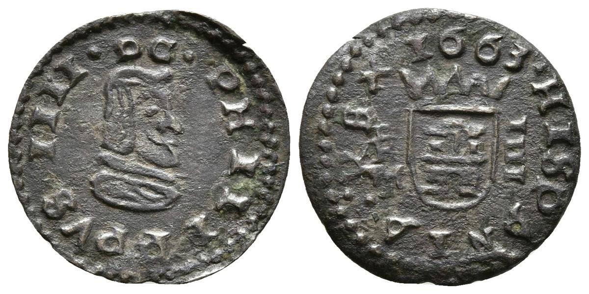 FELIPE IV. 4 Maravedís. 1663. Trujillo M. Cal-1647; J.S. M-766. Ae. 0,86g. MBC+/MBC. Escasa.