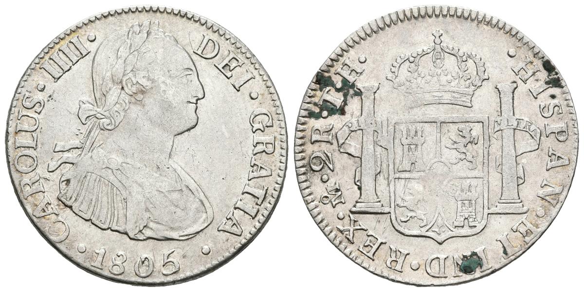 CARLOS IV. 2 Reales. 1805. México TH. Cal-1000. Ar. 6,67g. MBC.