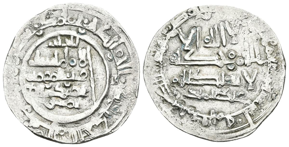CALIFATO DE CORDOBA. Hisham II. Dirham. 397H. Madinat Fas (Fez). Citando a Al-Hayib con Al-Mu`iz y `Abd Al-Malik. V. 666. Ar. 2,79g. MBC. Escasa.