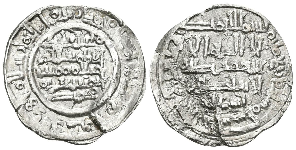 CALIFATO DE CORDOBA. Sulayman. (2º Reinado). Dirham. 406H. Al-Andalus. Citando a Badil o Asil en la IA y Wali y Al-`ahd con Muhammad en la IIA. V. No cita; Suplemento Taifas nº16. Ar. 2,51g. Grieta. MBC+. Muy rara.