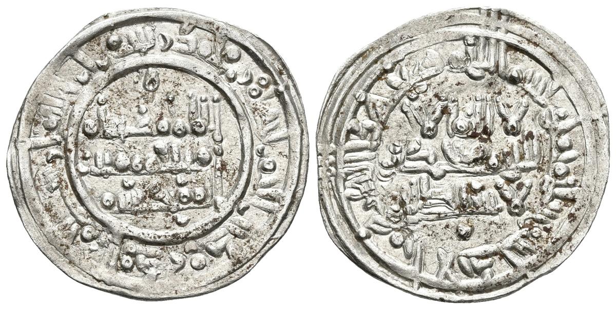 CALIFATO DE CORDOBA. Hisham II (2º Reinado). Dirham. 408H. Al-Andalus. V. No cita (Similar a V.709-710 del 400-401); Prieto No cita. Ar. 2,57g. EBC-. INÉDITA. A finales del año 408 muere Ali ibn Hammud, asesinado en Córdoba por seguidores de los Amiries. Creemos que este dirham pudo ser acuñado por adictos al partido Amirí y contrarios a los bereberes Hammudies.
