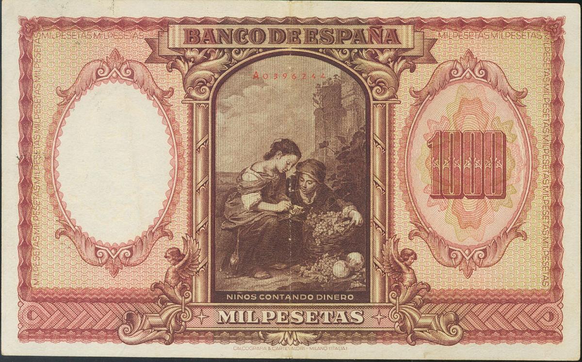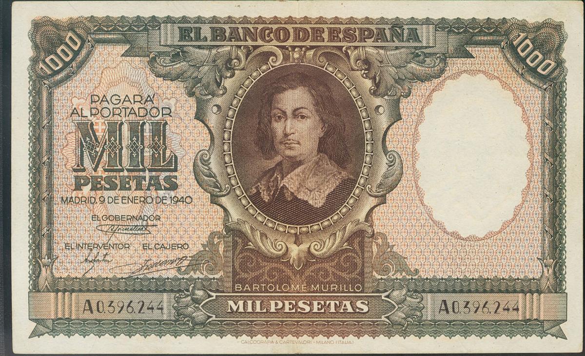1000 Pesetas. 9 de Enero de 1940. Serie A. (Edifil 2017: 440). Leve doblez vertical y apresto original. Raro. EBC.