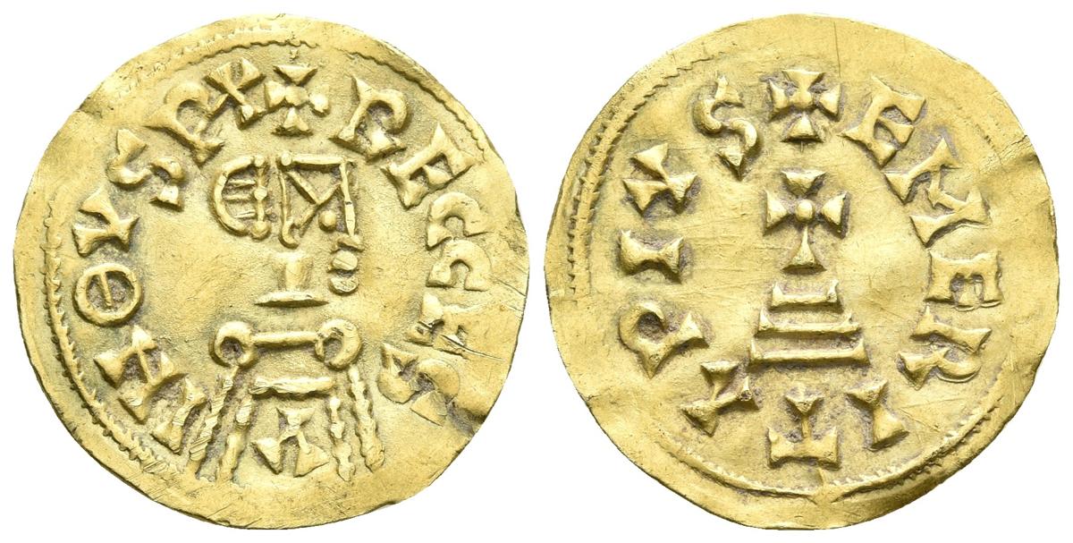RECESVINTO. Triente. (649-672). Emerita (Mérida). CNV 463; R.Pliego 600a. Au. 1,45g. MBC+. Rara.