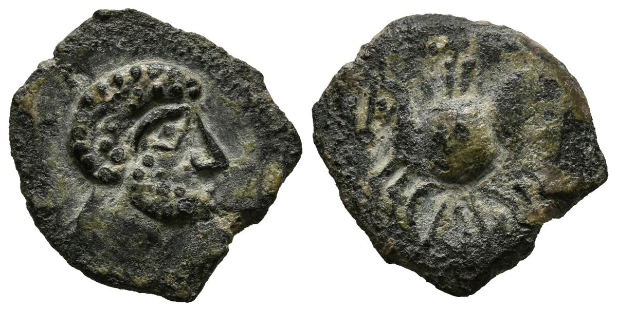 CARISA (cerca de Bornos, Cádiz). Semis. (Ae. 1,90g/17mm). 50 a.C. (FAB-452). Anv: Cabeza masculina a derecha. Rev: Jinete con lanza y escudo a izquierda, debajo leyenda: CARIS. MBC+.