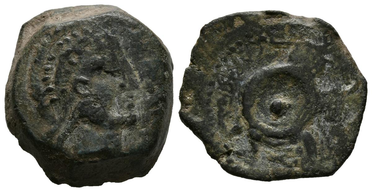 CARISA (cerca de Bornos, Cádiz). Semis. (Ae. 4,47g/19mm). 50 a.C. (ACIP-2514). Anv: Cabeza masculina diademada a derecha. Rev: Jinete con lanza y escudo a derecha, debajo leyenda: CARISIA. MBC.