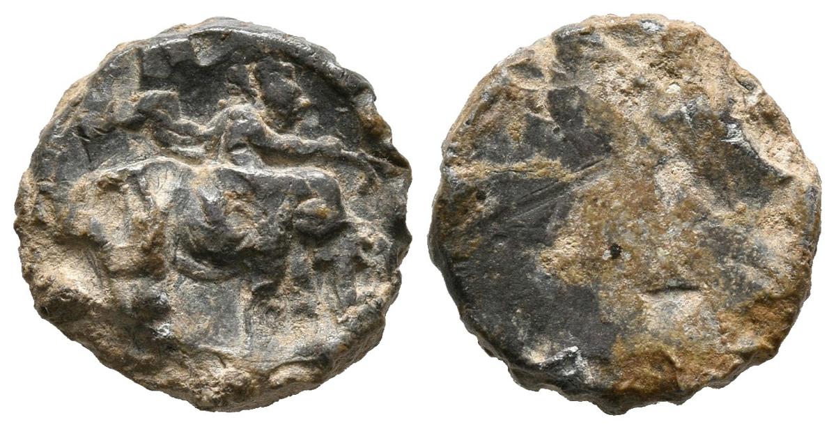 ¿CARTAGONOVA (Cartagena, Murcia)?. Plomo monetiforme. (Pb. 3,97g/14mm). (CCP no cita). Anv: Elefante dirigido por guía a derecha. Rev: Liso. MBC+. Escaso.