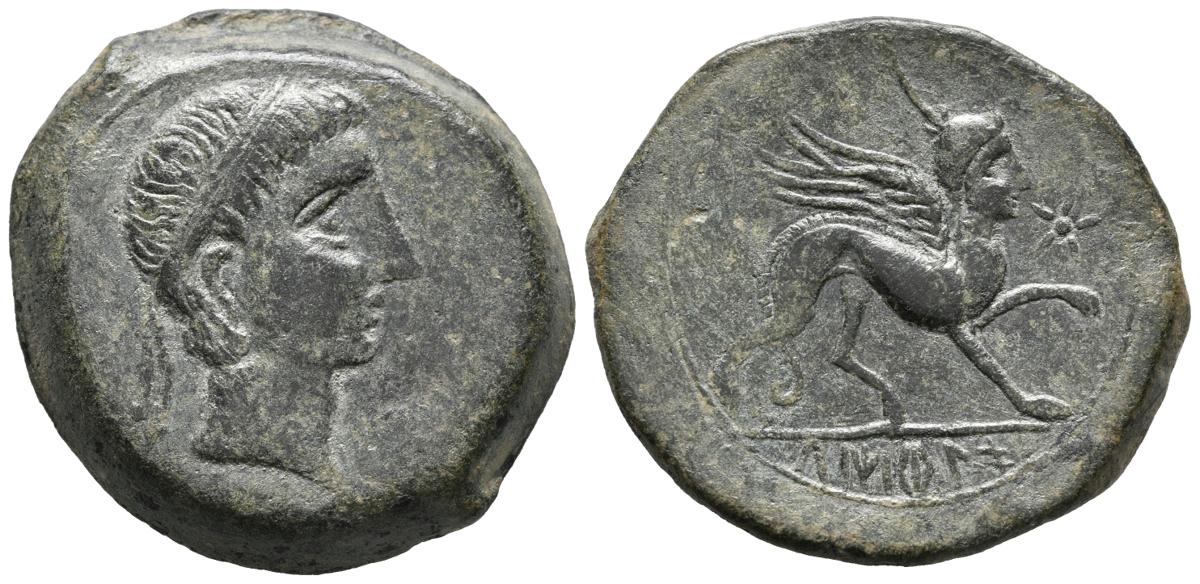 CASTULO (Cazlona, Jaén). As. (Ae. 21,20g/32mm). 180 a.C. (FAB-707). Anv. Busto masculino diademado a derecha. Rev: Esfinge a derecha, delante estrella, debajo de línea leyenda ibérica: CaSTeLE. MBC.
