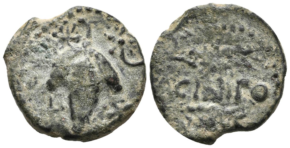 ACINIPO (Ronda, Málaga). As. (Ae. 7,24g/23mm). 100-50 a.C. (FAB-52). Anv: Racimo de uvas, alrededor cuatro estrellas. Rev: Dos espigas a derecha, entre ellas leyenda: ACINIPO. MBC.