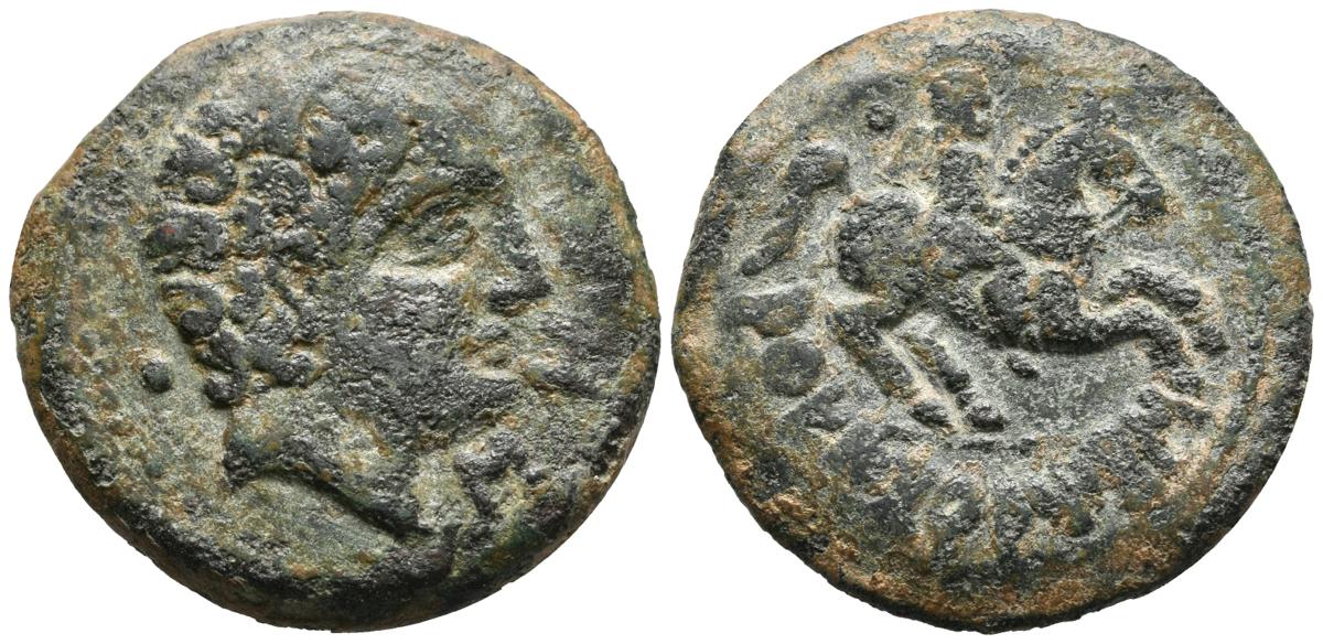AREICORATICOS (Agreda, Soria). As. (Ae. 26,31g/34mm). 150-20 a.C. (FAB-84). Anv: Cabeza masculina a derecha, delante letras ibéricas: SOS, detrás punto. Rev: Jinete con lanza a derecha, debajo leyenda curva: AREICoRATiCoS. MBC-.
