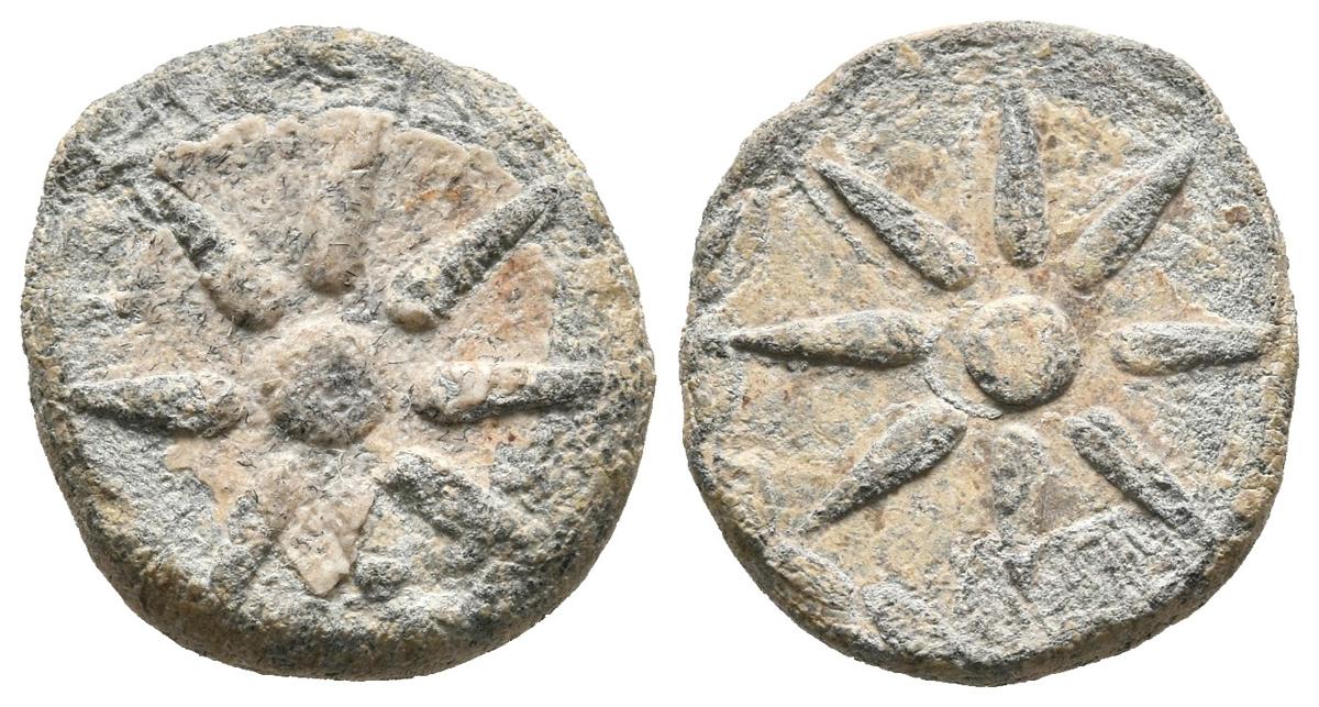 ¿MALACA (Málaga)?. Plomo monetiforme. (Pb. 3,28g/16mm). (CCP no cita). Anv: Estrella de 8 puntas. Rev: Estrella de 8 puntas. MBC.