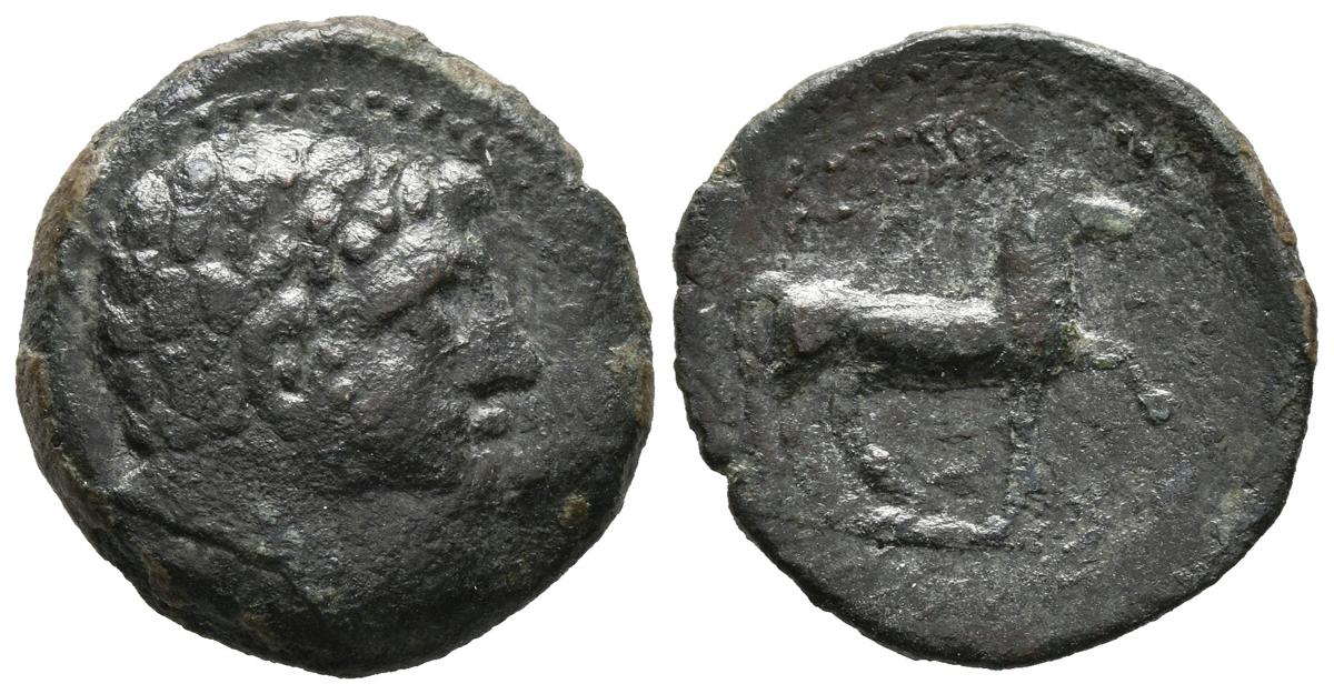 NABRISA (Lebrija, Sevilla). Semis. (Ae. 4,04g/20mm). 50 a.C. (FAB-1766). Anv: Cabeza masculina a derecha. Rev: Caballo a derecha, encima leyenda: NABRISSA/NA. BC+.