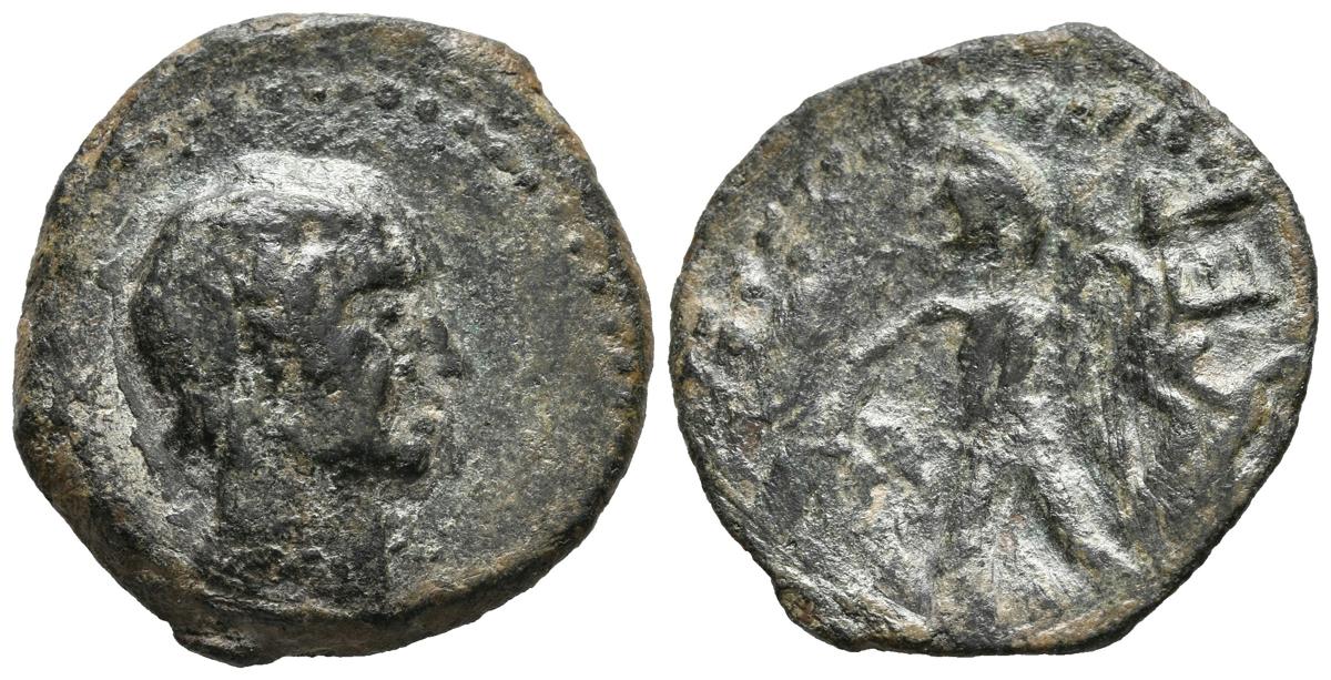 OSET (San Juan de Aznalfarache, Sevilla). As. (Ae. 7,02g/26mm). 120-20 a.C. (FAB-1951). Anv: Cabeza de Augusto a derecha. Rev: Genio estante a izquierda con racimo de uvas, detrás leyenda: OSET. MBC-.