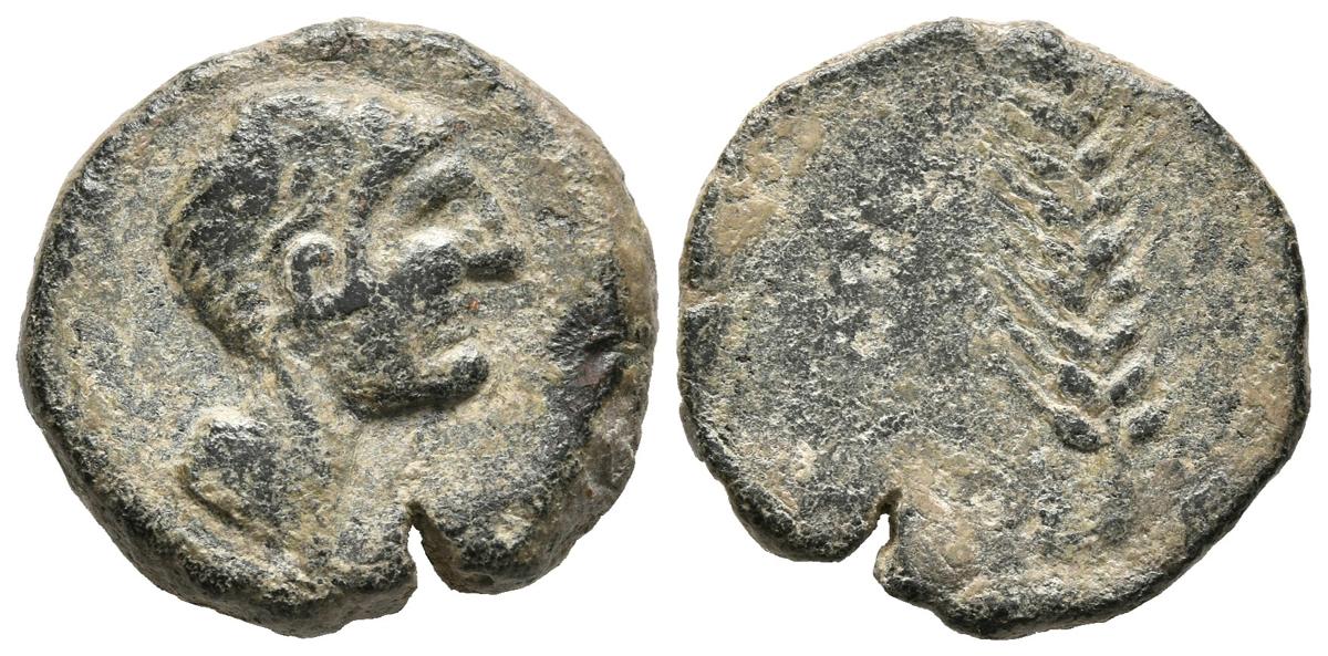 SEARO (Utrera, Sevilla). Semis. (Ae. 4,51g/18mm). 120-50 a.C. (FAB-2115). Anv: Cabeza masculina a derecha. Rev: Espiga. MBC-.