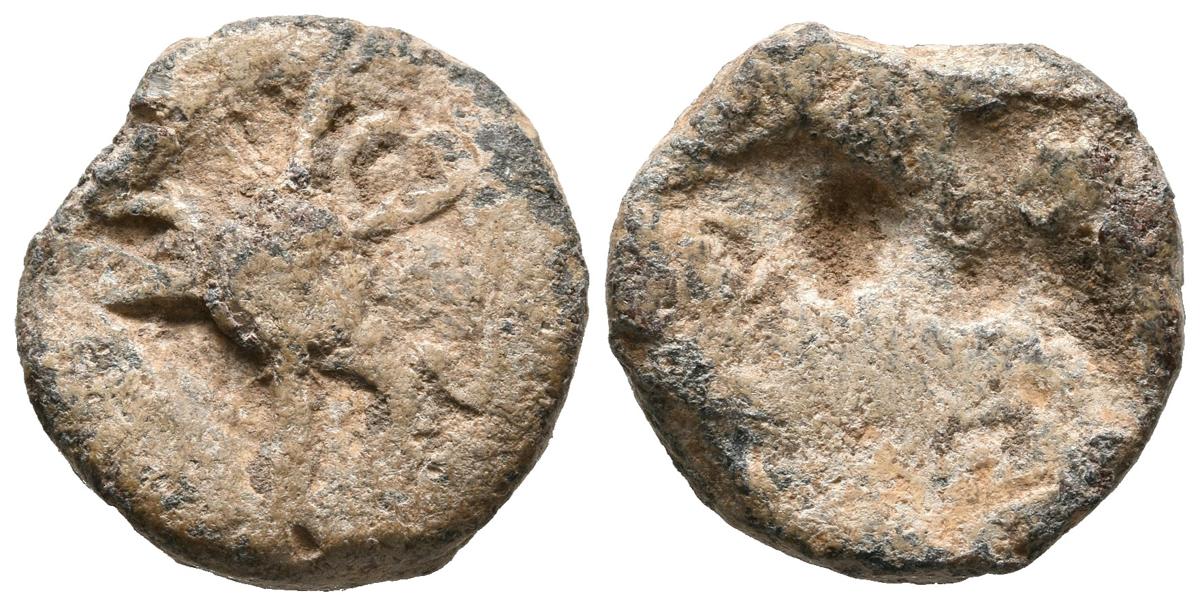 UCIA (Cabezas de San Juan, Sevilla). Plomo monetiforme. (Pb. 6,75g/18mm). (CCP no cita). Anv: Glóbulo, alrededor leyenda: VCIA. Rev: Liso. MBC.