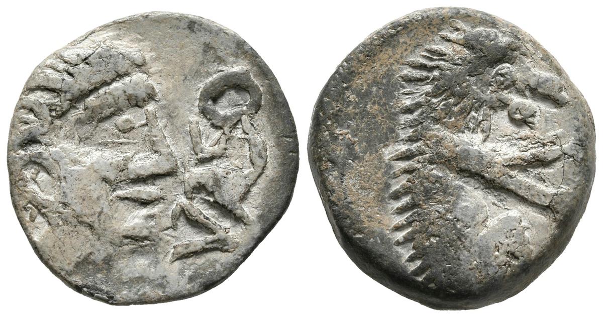 URSONE (Osuna, Sevilla). Plomo monetiforme. (Pb. 6,53g/21mm). (CCP-1). Anv: Cabeza masculina a derecha, delante leyenda: VRSONE. Rev: Oso sentado. MBC+. Rarísimo ejemplar.