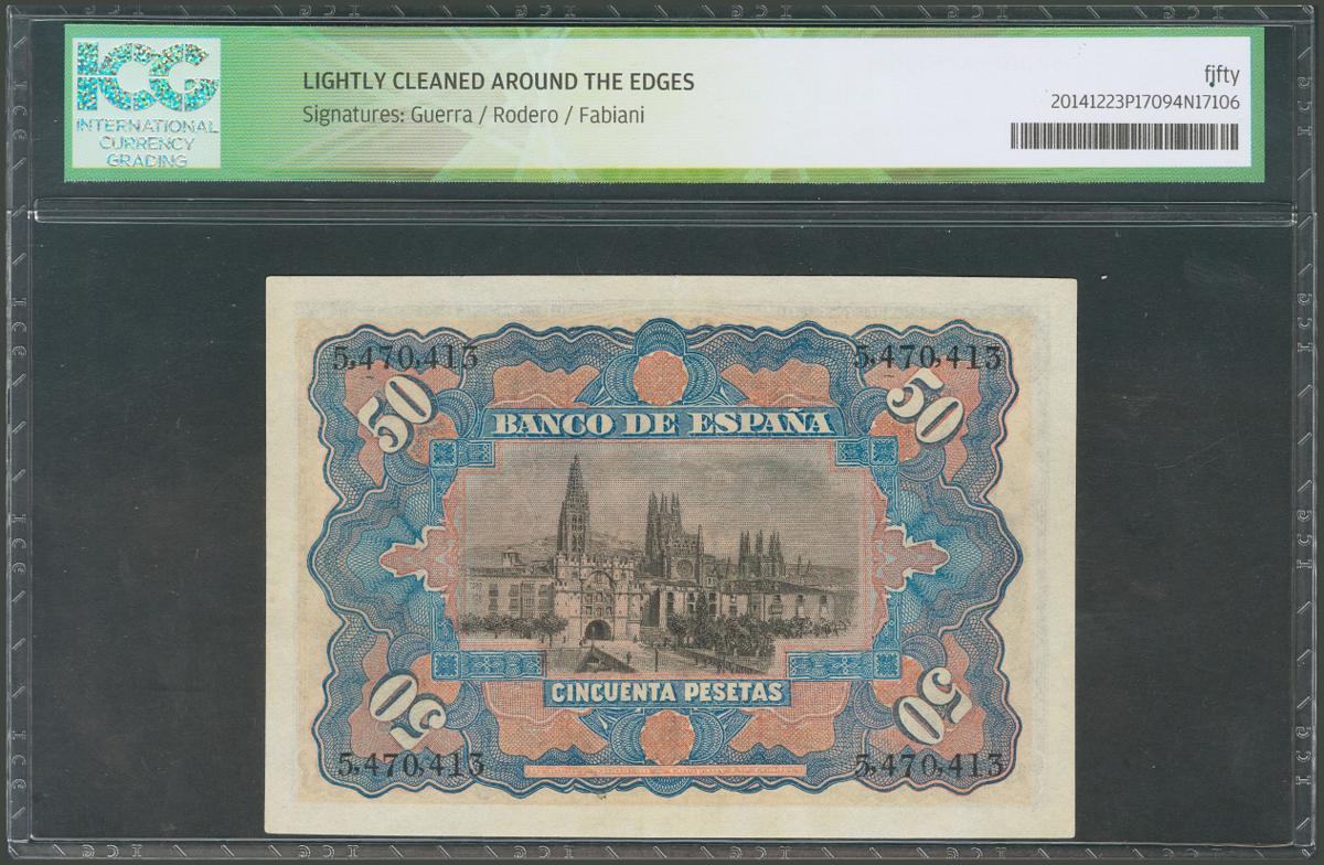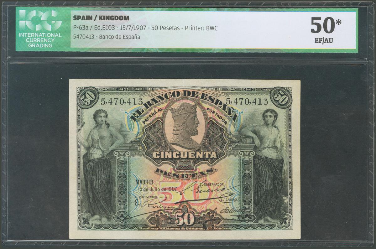 50 Pesetas. 15 de Julio de 1907. Sin serie. (Edifil 2017: 319). EBC. Encapsulado ICG50*.