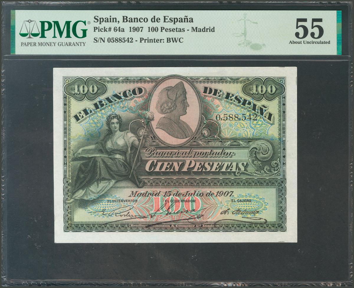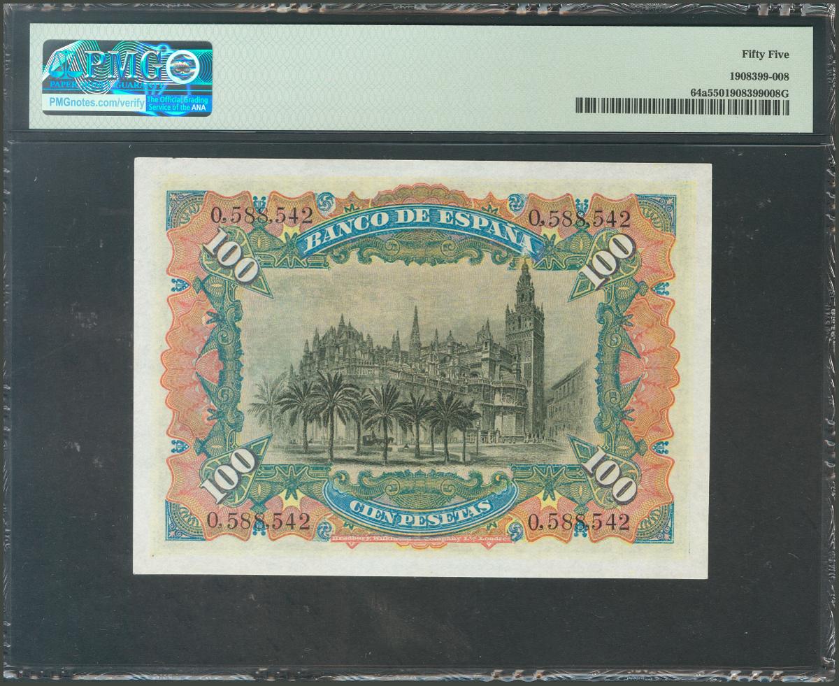 100 Pesetas. 15 de Julio de 1907. Sin serie. (Edifil 2017: 320). EBC+. Encapsulado PMG55.