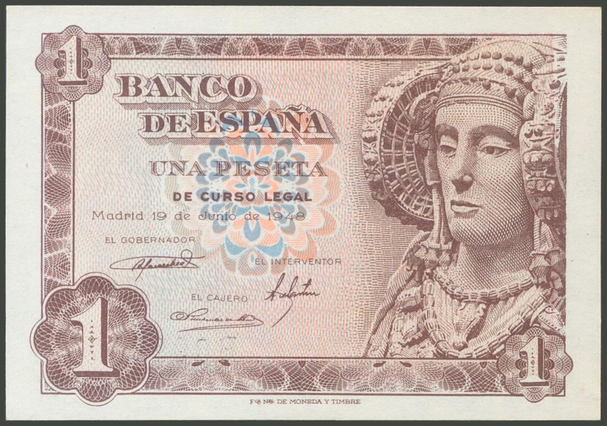 1 Peseta. 19 de Junio de 1948. Serie B. (Edifil 2017: 457a). Apresto original. SC.