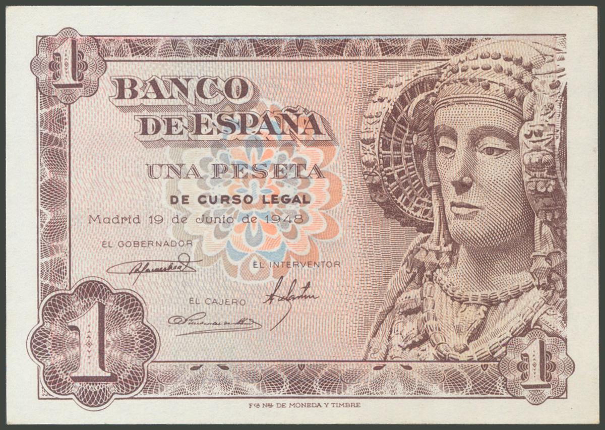1 Peseta. 19 de Junio de 1948. Serie D. (Edifil 2017: 457a). Apresto original. SC.