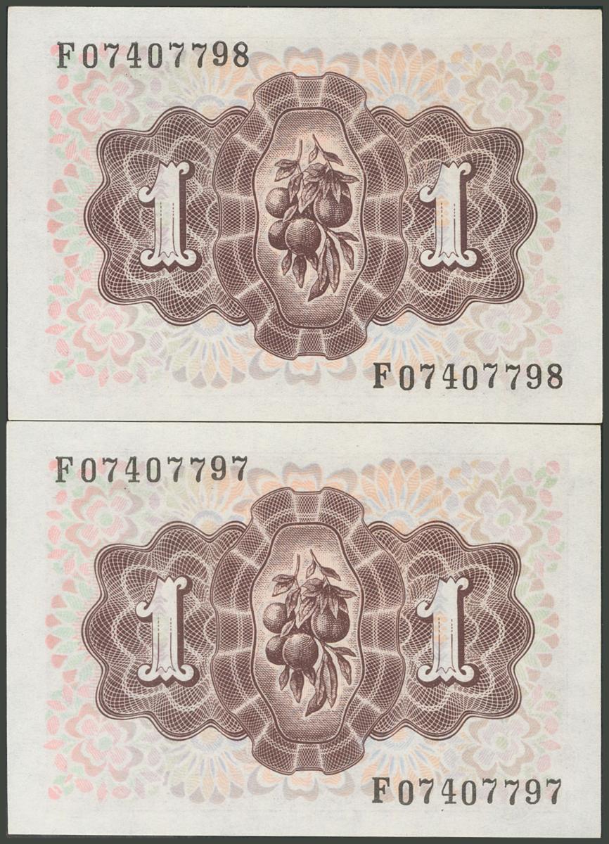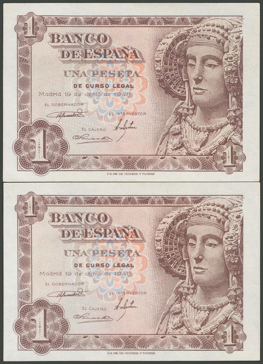1 Peseta. 19 de Junio de 1948. Pareja correlativa. Serie F. (Edifil 2017: 457a). Apresto original. SC.