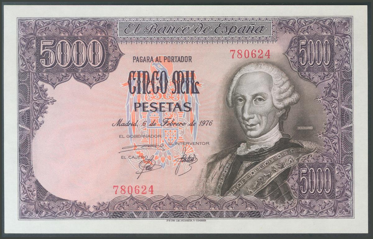 5000 Pesetas. 6 de Febrero de 1976. Sin serie. (Edifil 2017: 475). Apresto original. SC.