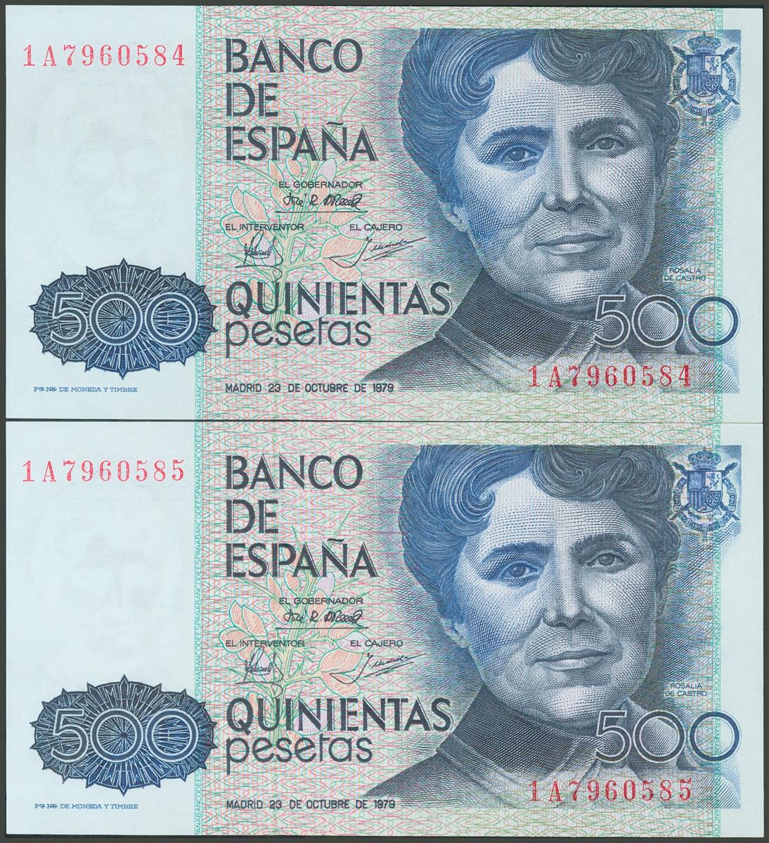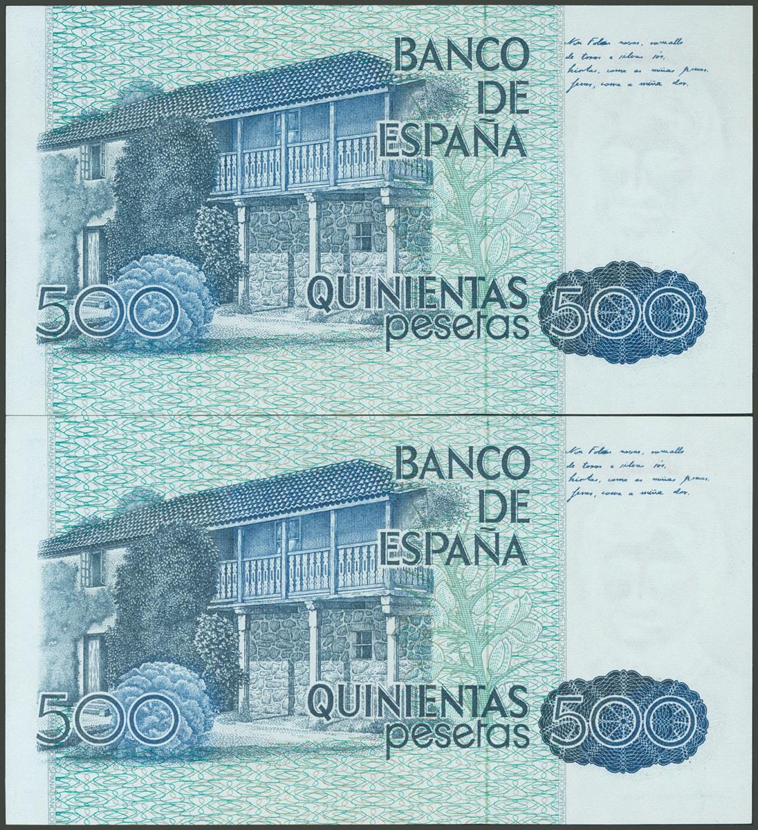 500 Pesetas. 23 de Octubre de 1979. Pareja correlativa. Serie 1A. (Edifil 2017: 476). SC.