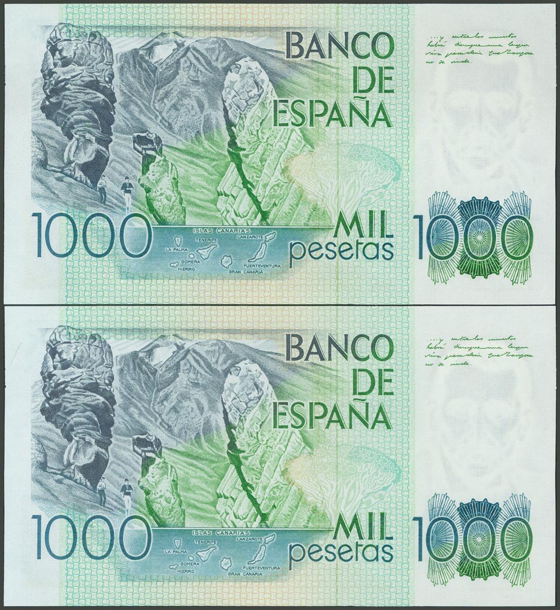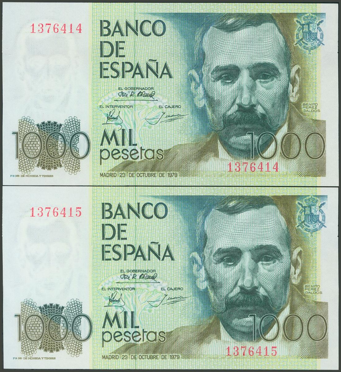 1000 Pesetas. 23 de Octubre de 1979. Pareja correlativa. Sin serie. (Edifil 2017: 477). SC.