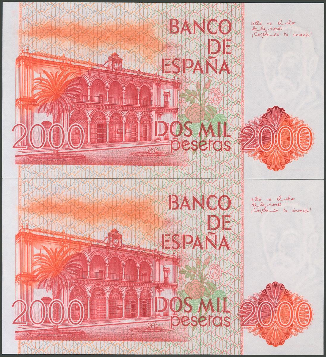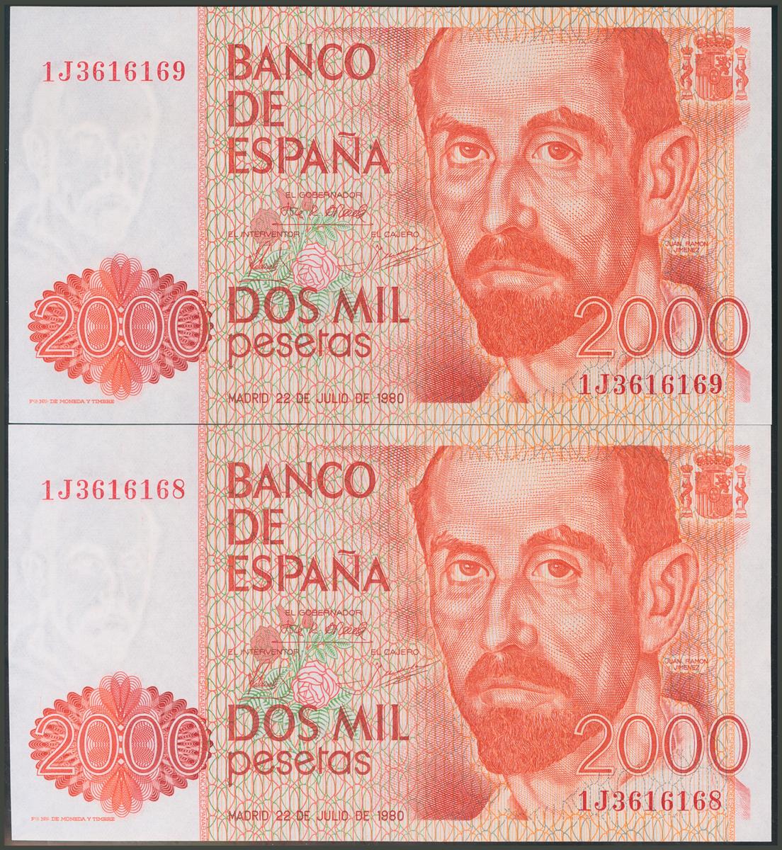 2000 Pesetas. 22 de Julio de 1980. Pareja correlativa. Serie 1J. (Edifil 2017: 479a). SC.