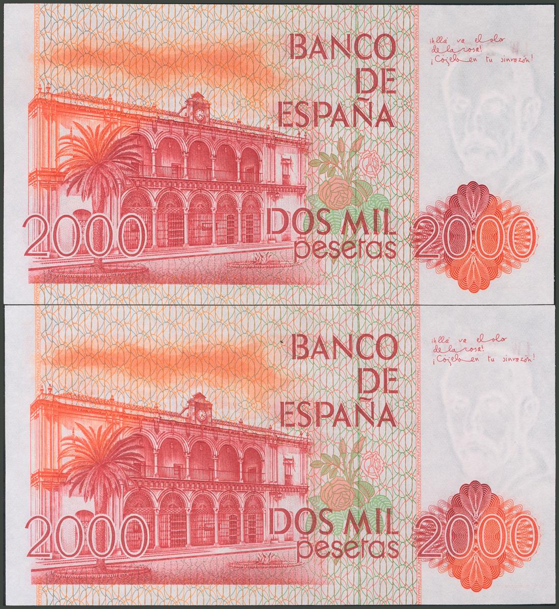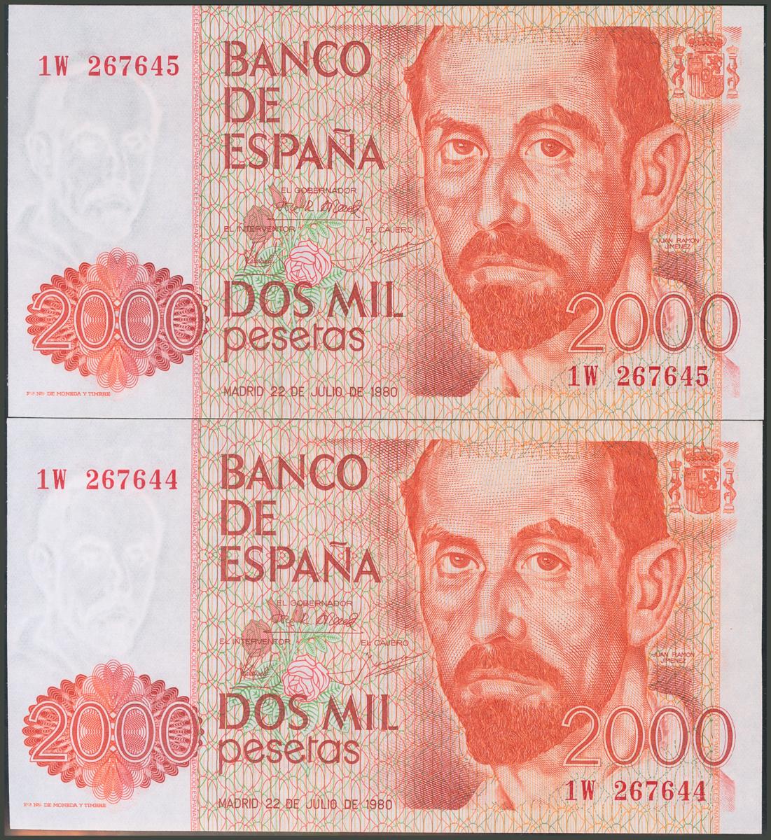 2000 Pesetas. 22 de Julio de 1980. Pareja correlativa. Serie 1W. (Edifil 2017: 479a). EBC+.