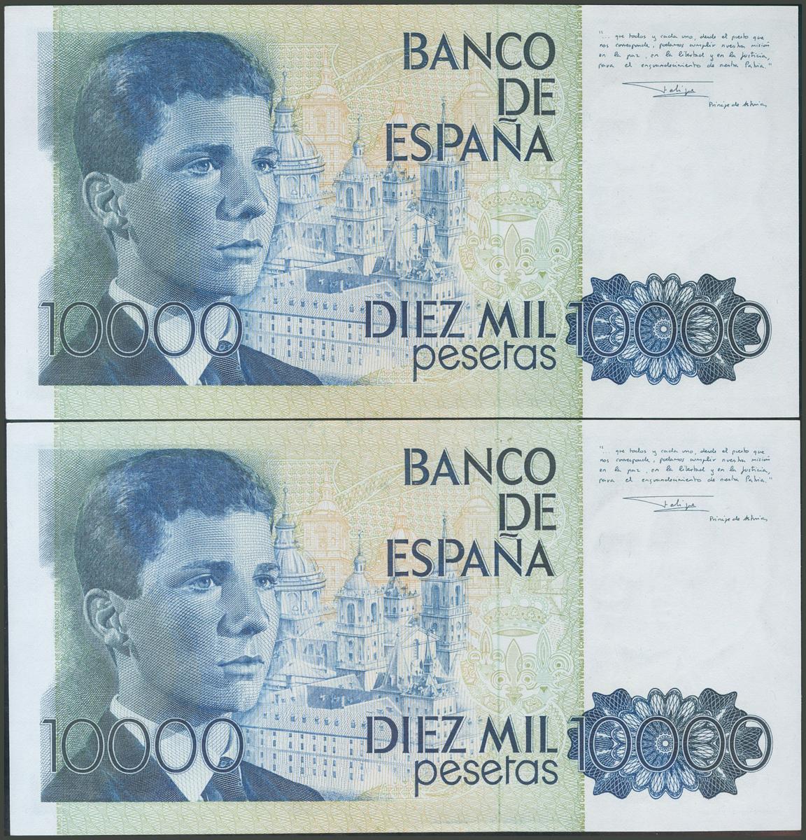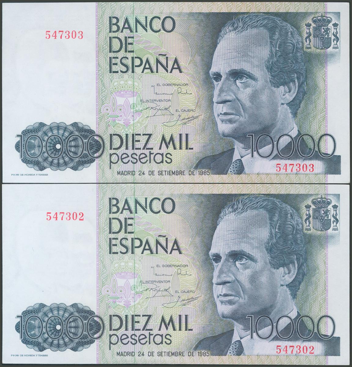 10000 Pesetas. 24 de Septiembre de 1985. Pareja correlativa. Sin serie. (Edifil 2017: 481). SC-.