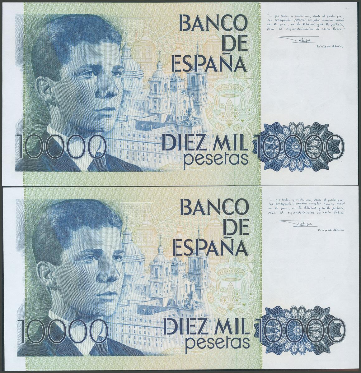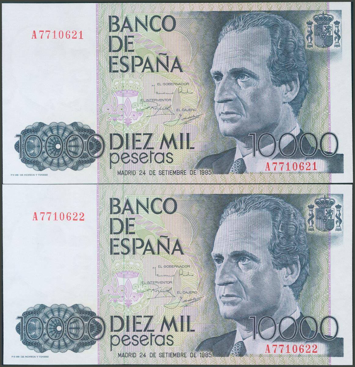 10000 Pesetas. 24 de Octubre de 1985. Pareja correlativa. Serie A. (Edifil 2017: 481a). SC.