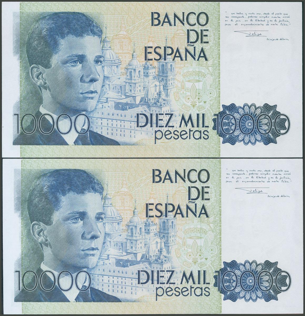10000 Pesetas. 24 de Octubre de 1985. Pareja correlativa. Serie A. (Edifil 2017: 481a). SC-.