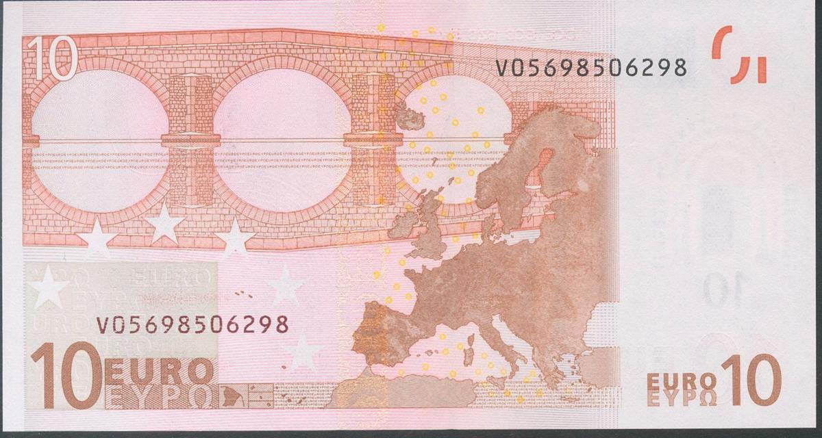10 Euros. 1 de Enero de 2002. Firma Duisenberg. Serie V (España). (Edifil 2017: 487). SC.