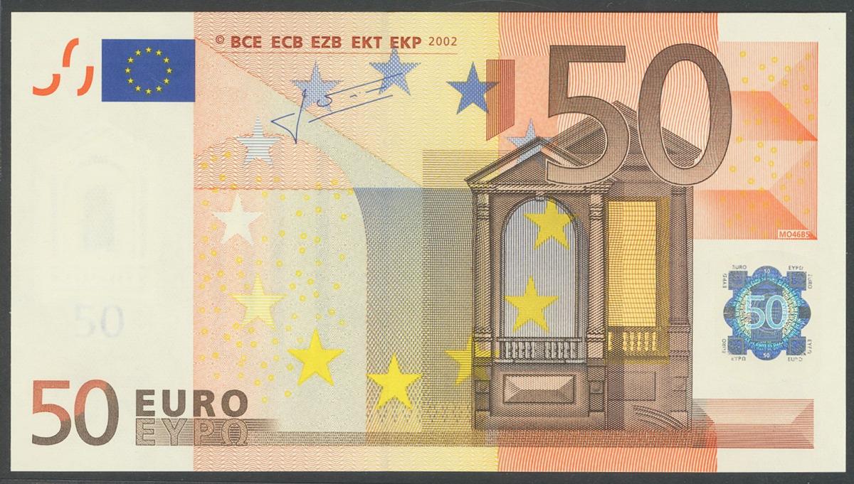 50 Euros. 1 de Enero de 2002. Firma Trichet. Serie V (España). (Edifil 2017: 489A). SC-.