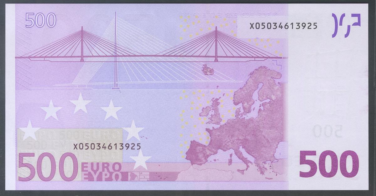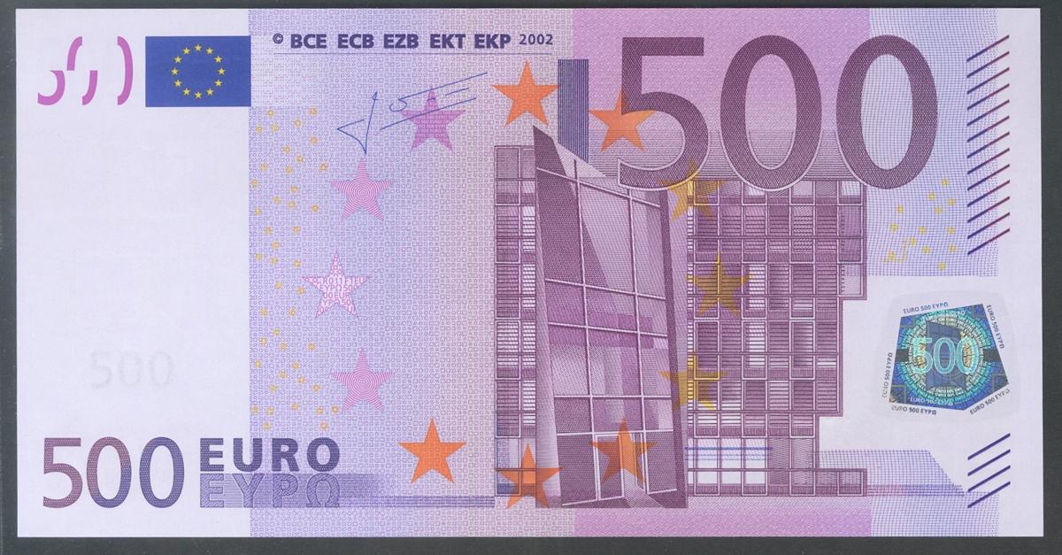 500 Euros. 1 de Enero de 2002. Firma Trichet. Serie X (Alemania). (Edifil 2017: 492A). SC.