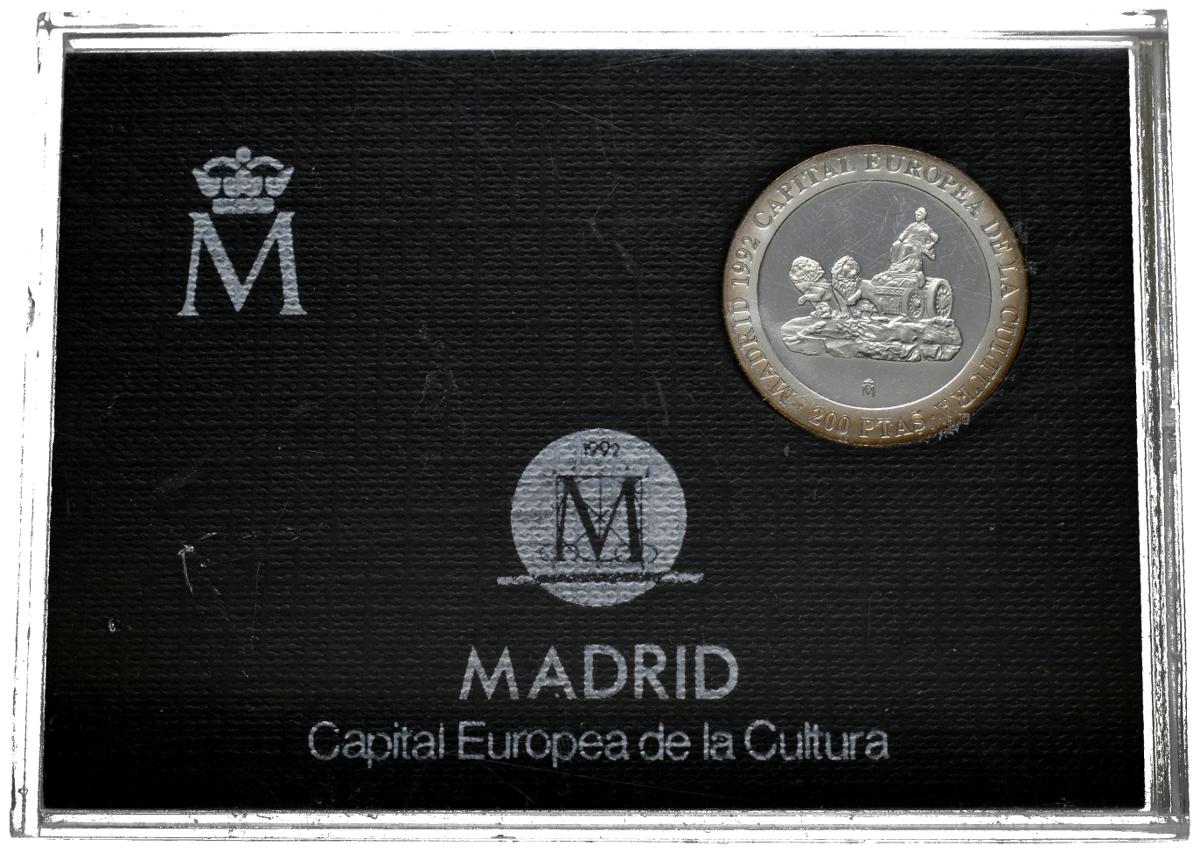 JUAN CARLOS I (1975-2014). 200 Pesetas. Madrid Capital Europea de la Cultura. La Cibeles. FNMT. Cartera oficial con certificado.