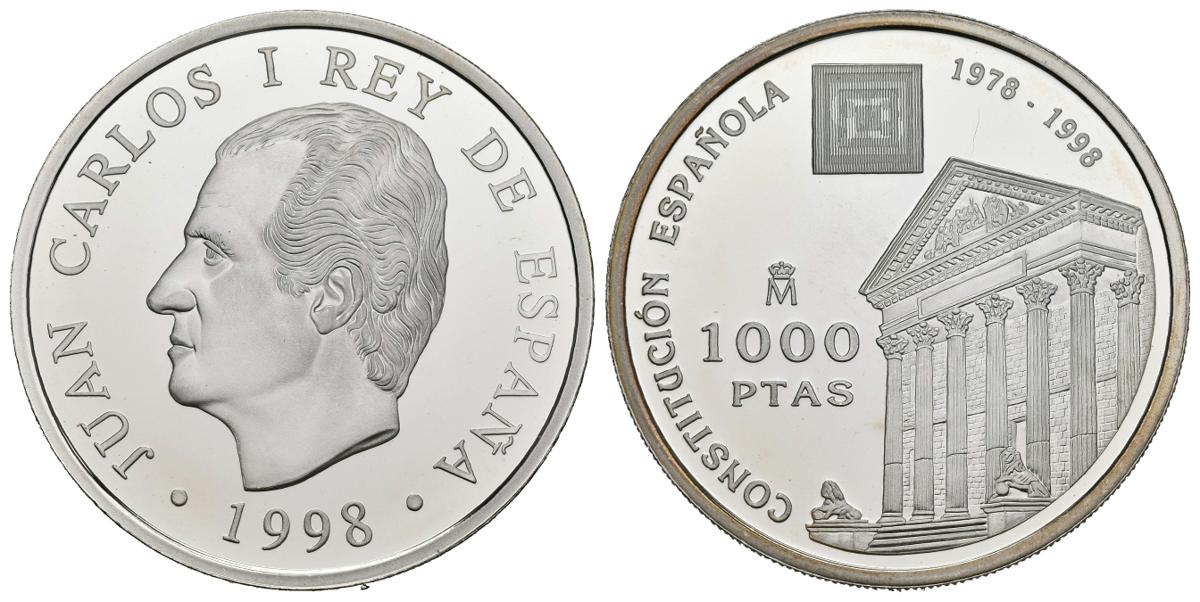 JUAN CARLOS I (1975-2014) . 1000 Pesetas. (Ar. 13,50g/33mm). 1998. XX Aniversario de la Constitución Española. FNMT. Proof. Tirada de 75.000 unidades. Presentada en estuche oficial con certificado.