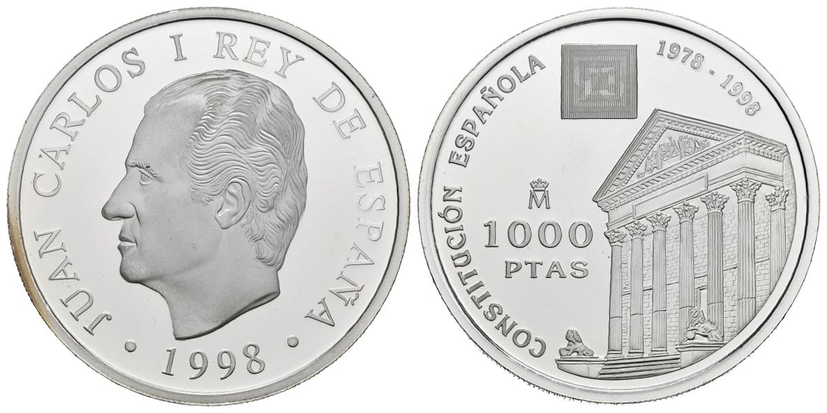 JUAN CARLOS I (1975-2014) . 1000 Pesetas. (Ar. 13,50g/33mm). 1998. XX Aniversario de la Constitución Española. FNMT. Proof. Tirada de 75.000 unidades. Presentada en estuche oficial con certificado.