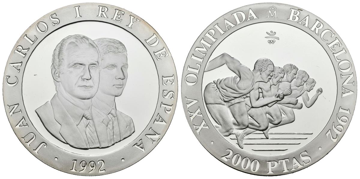 JUAN CARLOS I (1975-2014). 2000 Pesetas (Ar. 27,00g/40mm). 1992. FNMT. Serie Barcelona´92. Atletismo. PROOF. Tirada de 180 mil unidades. Incluye estuche original y certificado de autenticidad.