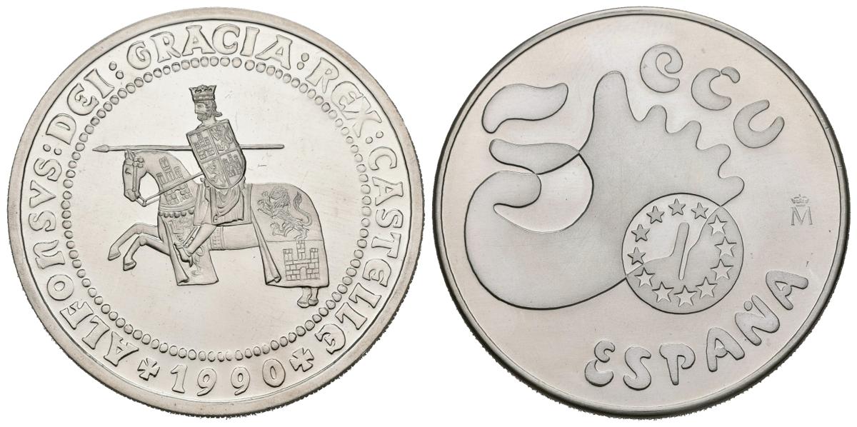 JUAN CARLOS I (1975-2014). 5 Ecu. (Ar. 33,62g/42mm). Alfonso X El Sabio. 1990. FNMT. Flor de cuño. 50.000 acuñaciones. Incluye estuche oficial y certificado de autenticidad.