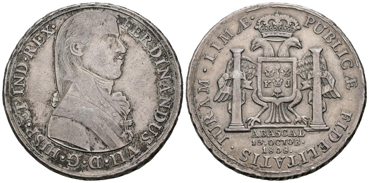 FERNANDO VII (1808-1833). Medalla de proclamación Lima. (Ar. 26,53g/39mm). 13 Octubre 1808. Grabador: Soto. (He-28). MBC.El importe de la liquidación de este lote irá destinado a Manos Unidas.