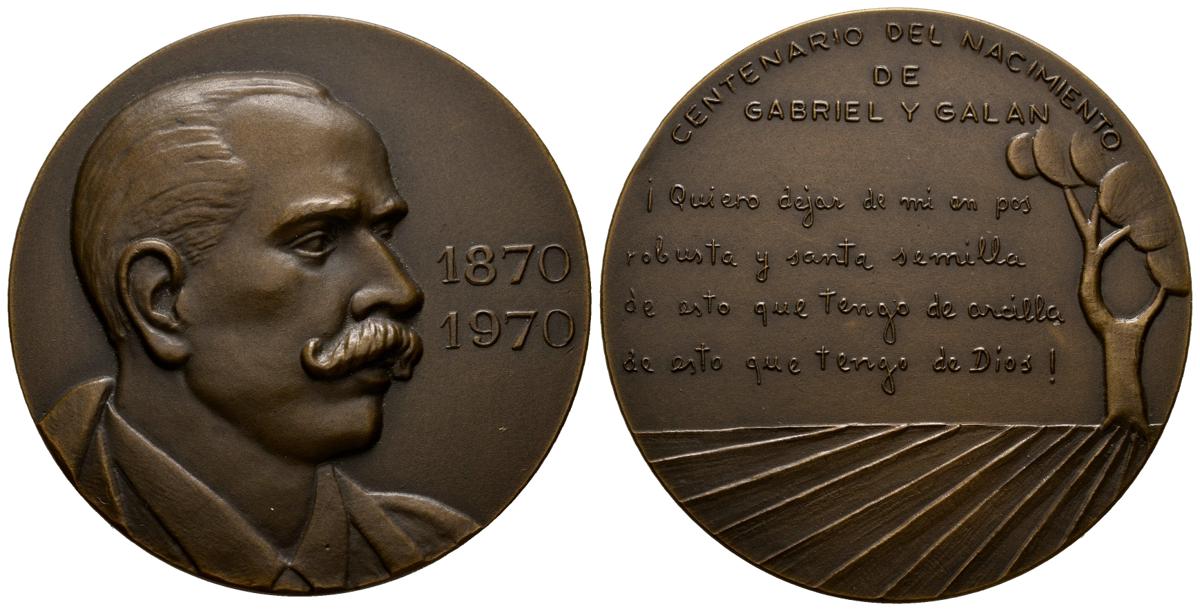 ESTADO ESPAÑOL (1936-1976). Centenario del Nacimiento del Poeta Gabriel y Galán (Ae. 91,61g/50mm). 1870-1970. SC. Incluye estuche de joyería.