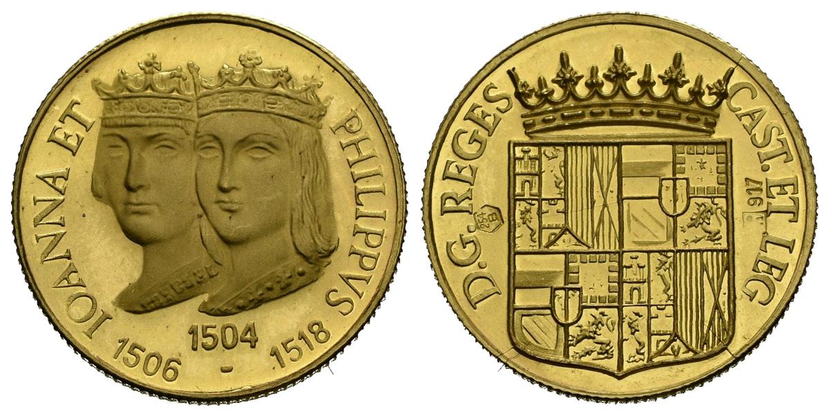 NUMISMATICA IBERICA. (Au. 3,49g/20mm). Juana y Felipe (1506-1518). SC. Incluye estuche original y certificado de autenticidad.