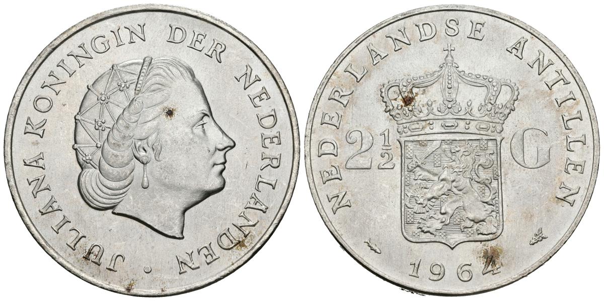 ANTILLAS HOLANDESAS. 2 1/2 Gulden (Ar. 24,95g/33mm). 1964. Juliana. (Km#7). EBC.