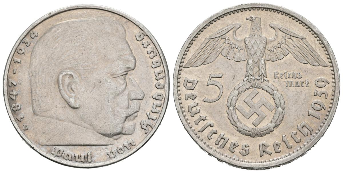ALEMANIA. 5 Mark (Ar. 13,88g/29mm). 1939. III Reich. Múnich. D. (Km#94). MBC+.