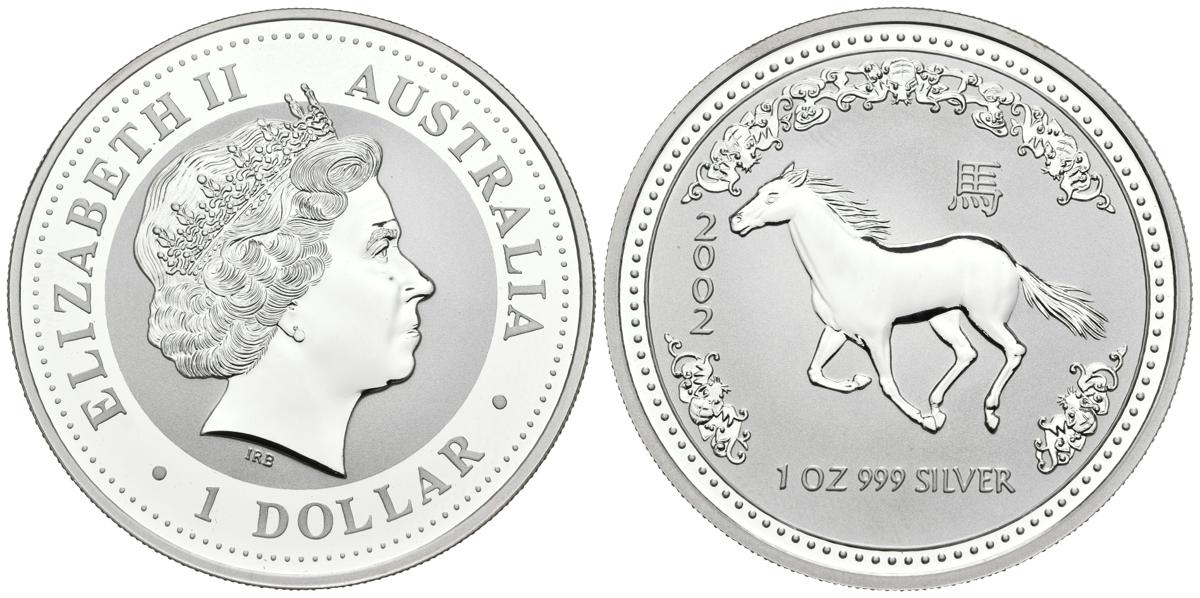 AUSTRALIA. 1 Dollar (Ar.31,88g/40mm). 2002. Zodiaco Chino: Año del Caballo. (Km#580). PROOF.