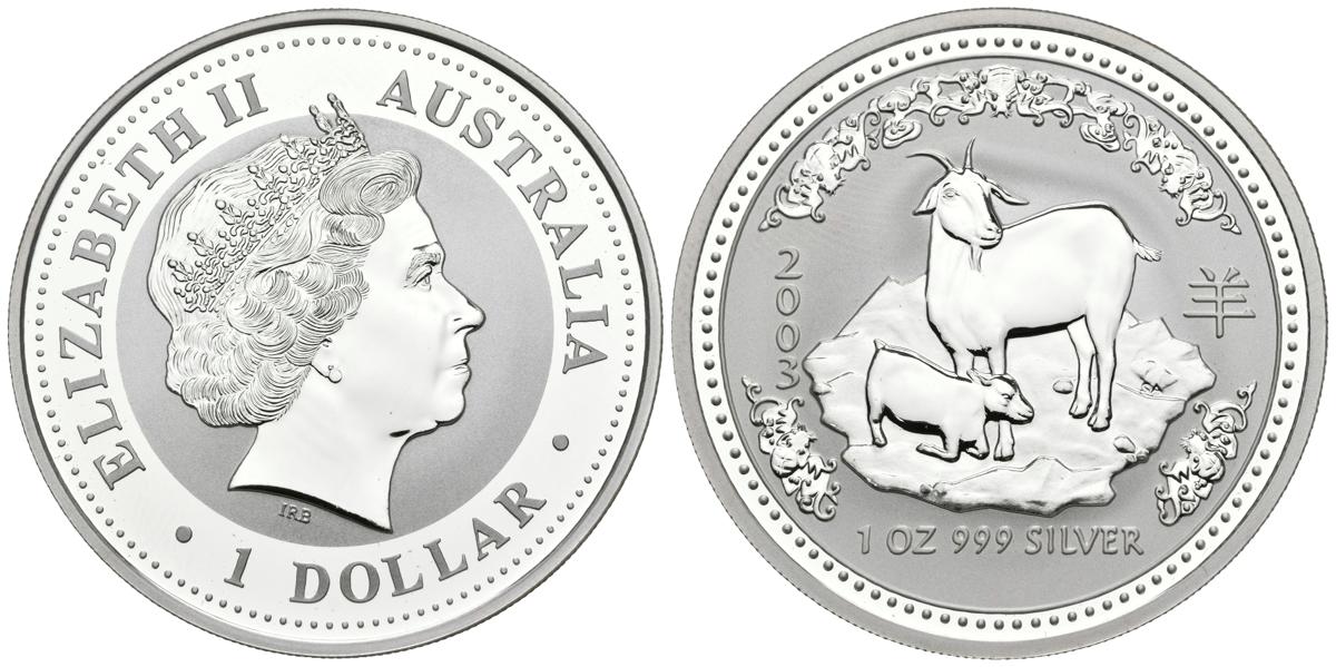 AUSTRALIA. 1 Dollar (Ar.31,82g/40mm). 2003. Zodiaco Chino: Año de la Cabra. (Km#665). PROOF.