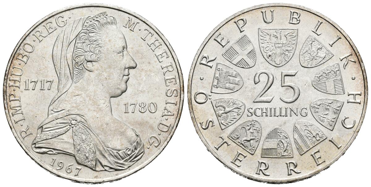 AUSTRIA. 25 Shilling (Ar. 13,00g/25mm). 1977. 250º Aniversario del Nacimiento de María Teresa. (Km#2901). EBC+.