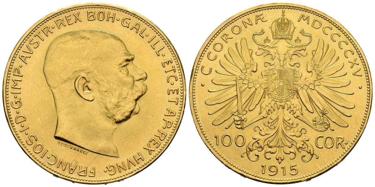 AUSTRIA. 100 Coronas (Au. 33,85g/37mm). 1915. Francisco José I. Reacuñación Oficial. (Km#2819). SC-.